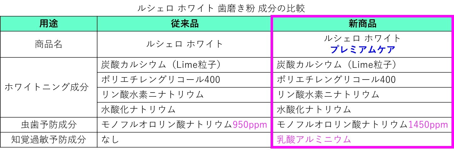ルシェロホワイト 歯磨き粉 プレミアムケア 成分効果比較違い