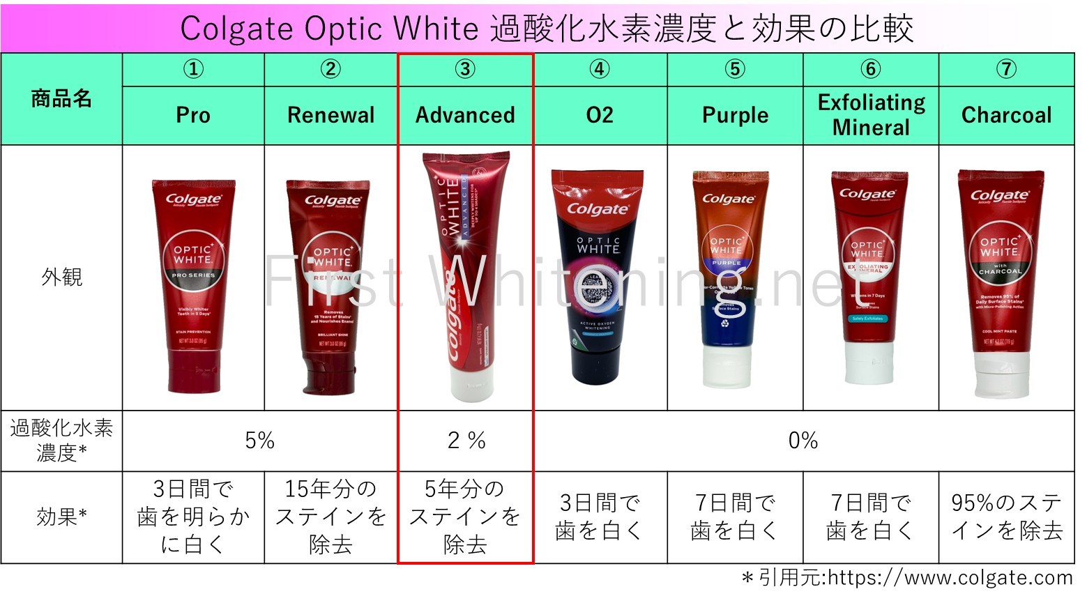 Colgate(コルゲート)リニューアルとプラチナム ハイインパクトの違いは?成分・過酸化水素濃度・効果を比較!コルゲート オプティックホワイト歯磨き粉